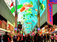 460미터의 Curved LCD Ceiling, 호텔거리, 인파, 시끄러운 음악소리, 술냄새가 진동하는 다수의 Bar, 각..
