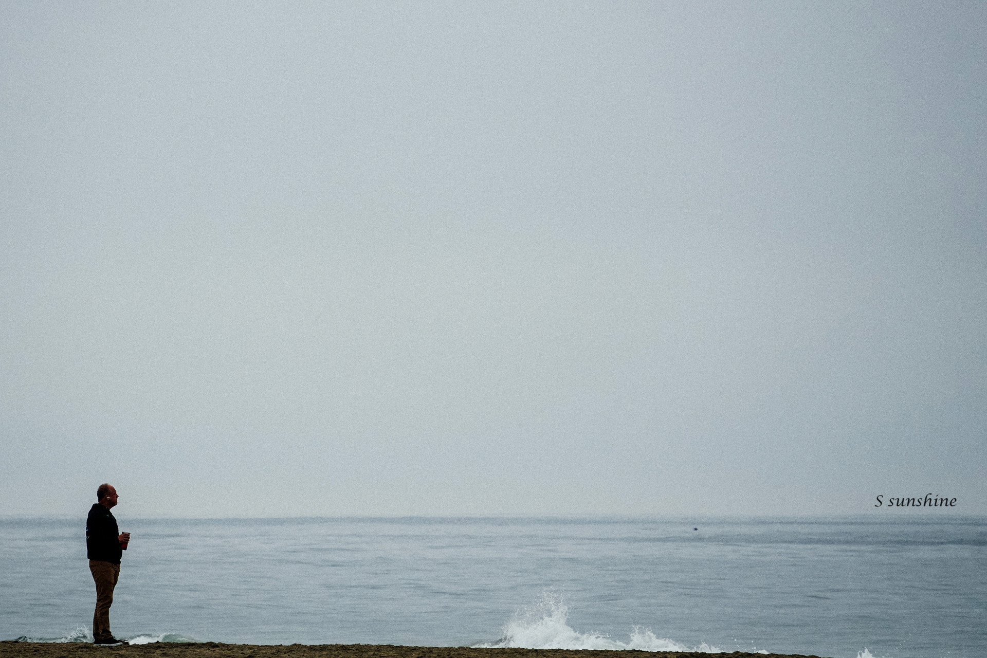 수평선과 미묘한 톤의 하늘, 잔잔한 파도의 흰 포말까지 조용하지만 깊은 분위기를 만들어줍니다.