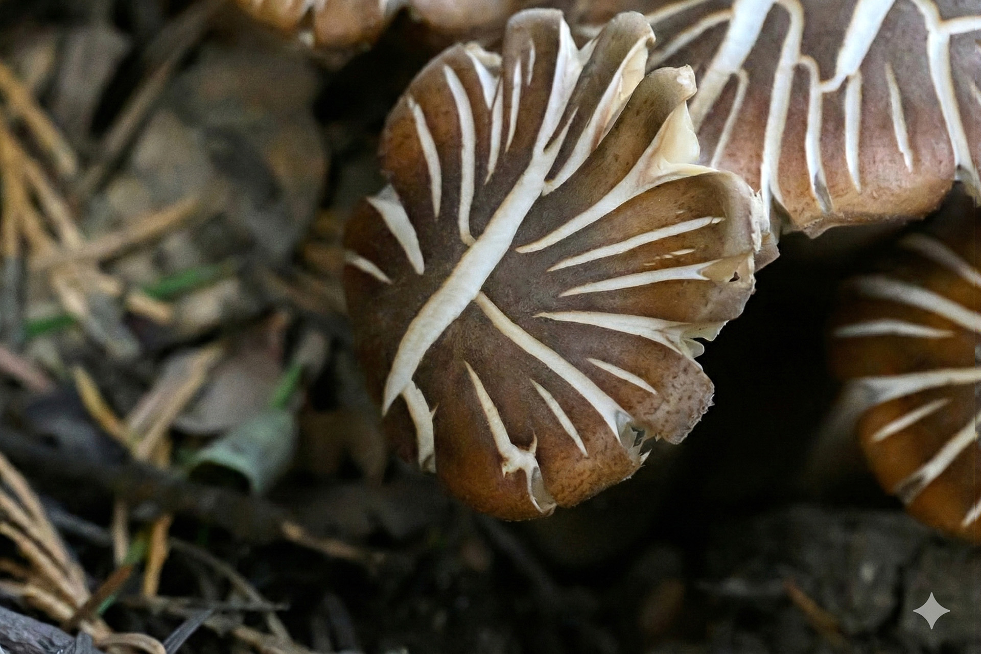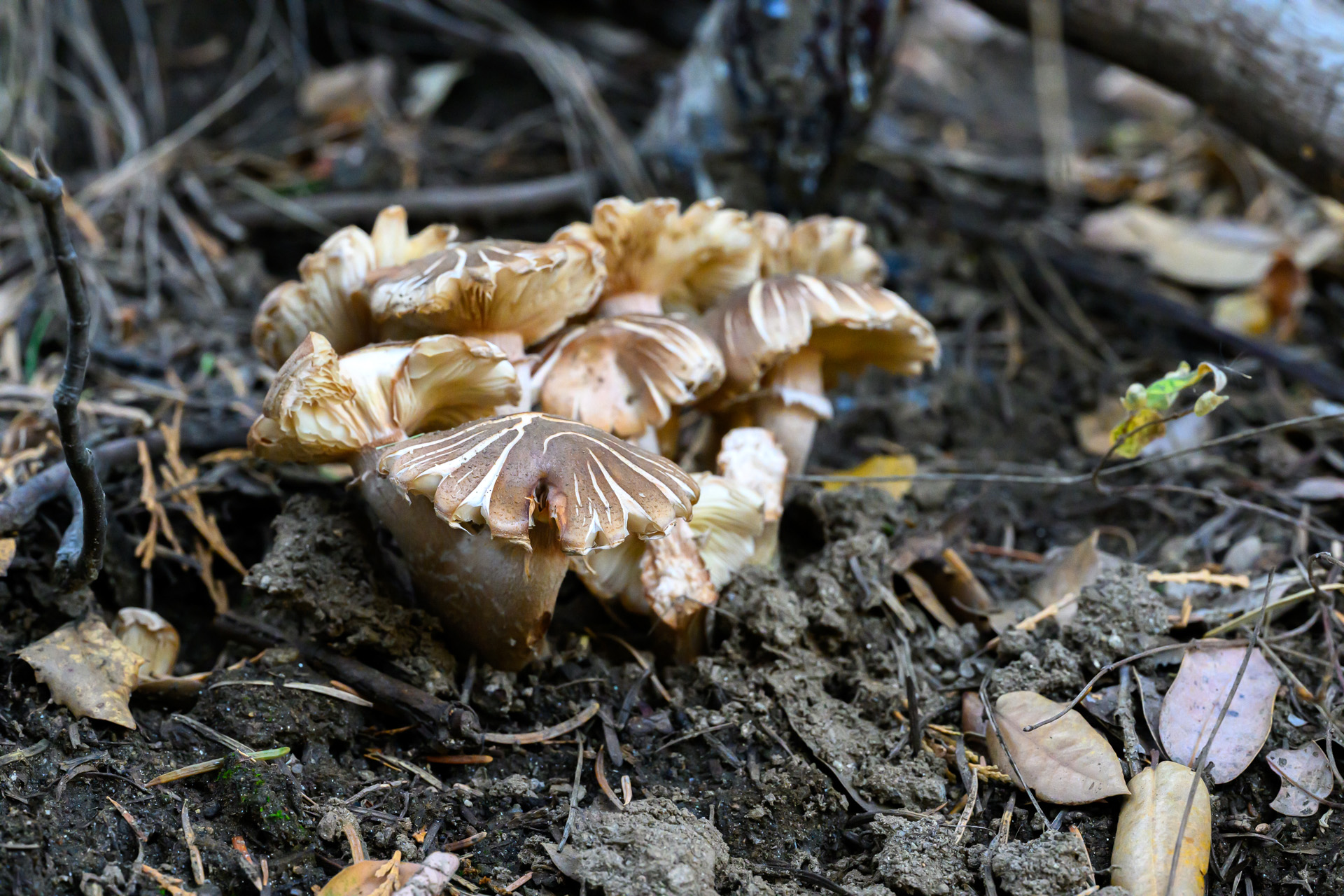 숲 바닥에서 조용히 군생하며, 균열이 만들어내는 자연의 패턴이 인상적이다.