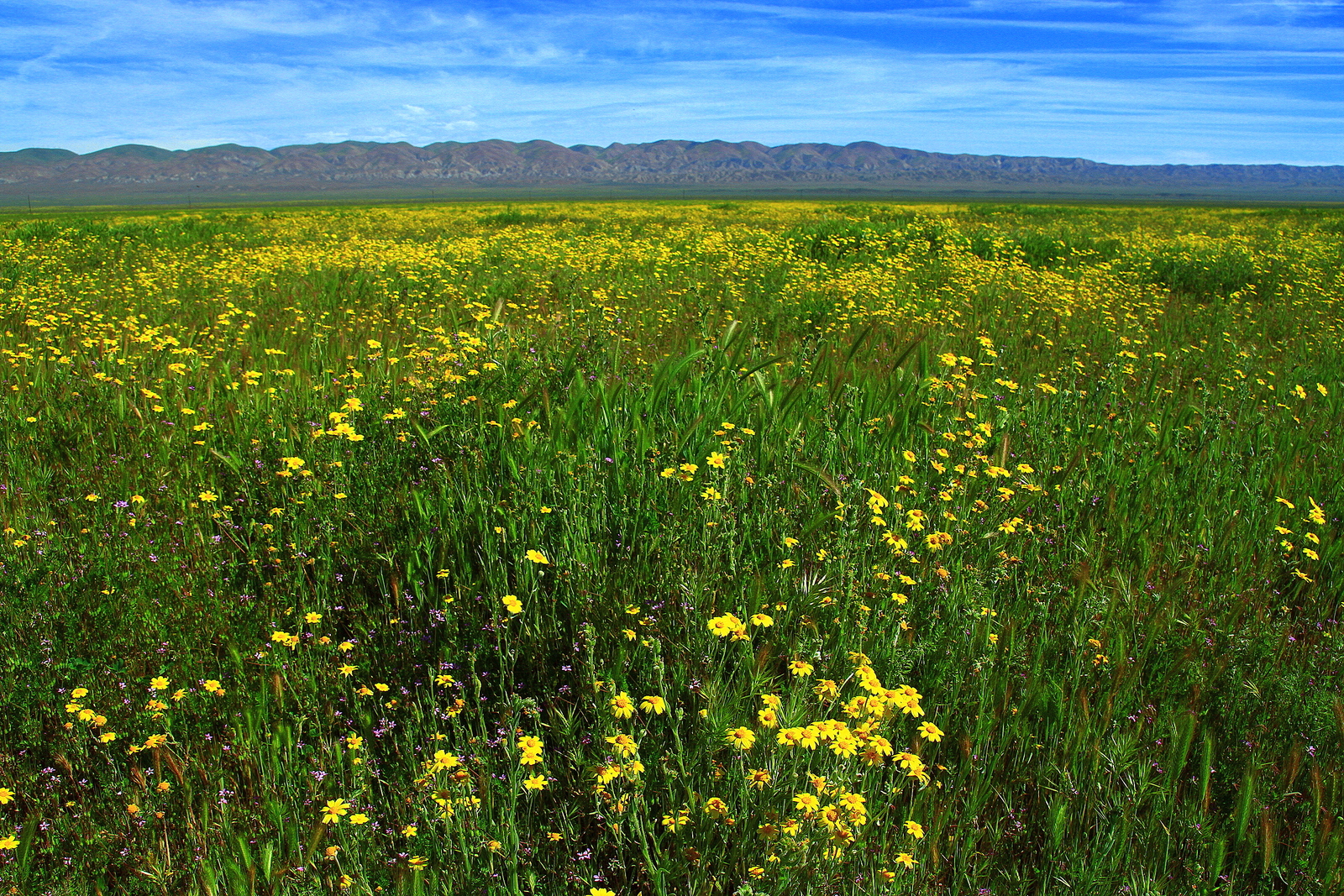 하늘의 파랑, 초원의 녹색, 꽃의 노랑, 이 세 색이 서로 싸우지 않고 완벽하게 균형을 이루고 있습니다.